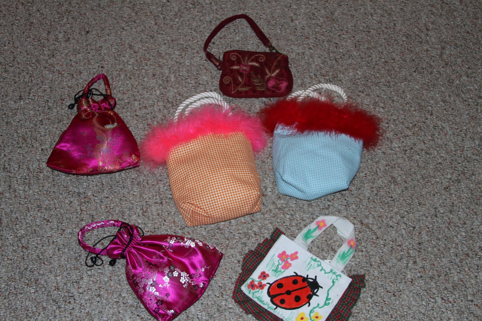 a sneak preview with a few items in the silent auction is posted for all to see. There's designer bags and regular bags for all ages. A children's corner will have ladybug bags, purses with boas & cookies to decorate.......so