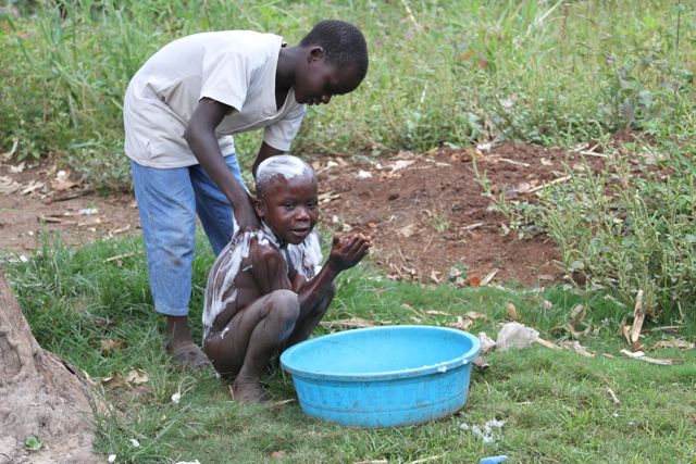 On the ride back into town from Nyenga, we stopped to visit a mother that is in the program. She sent her little boy (around 10 years old) to pick up her weekly food (which is about 5 miles down the road). Carolyn, the director of the Crisis Center, wanted to see why the mother did not show up. We walked up to her humble little 8 x 10 home and discovered her there with two sick children. Her name is Mafira. She has 6 children and has been abandoned. The toddler is in bed sick with malaria and another little boy is coughing so deeply that it is suspected he has TB. The 10 year old boy is taking care of all the children so that his mom can feed the baby. His name is Shariffe. In the short hour that we were there, Shariffe bathed his little brother so that he could go in to town with us to get tested for TB. He gathered the water at the creek so that his mom could boil it to make formula for the baby because she is HIV positive and cannot breast feed. He dressed his brother and then went in to gather clothes for another sibling. Shariffe started the fire in the outdoor kitchen so that lunch could be prepared. Carolyn took the family into town so that the children could be tested for malaria and TB. We asked the mother of 6 why she had not taken the children to the clinic and she simply said, "because they ask for money." She pays 10,000 shillings a month for her rent and doesn't have any money for food or medicine. That equals about $4.00 in the U.S. The average salary here is about 120,000 shillings a month which is equal to about $50.00 in the U.S. I'm most certain that this particular abandoned mom with six children doesn't make close to the monthly average income. She is strapped and feeling hopeless and on this particular day God sent her an angel to help her out named Carolyn.